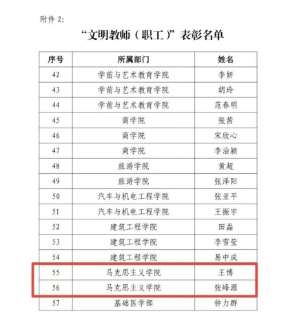 对年度表现突出的集体和个人进行表彰,是为了进一步加强学校精神文明建设,积极创建全国文明校园,弘扬先进,树立典型,更好地发挥典型的示范带动作用,营造学校精神文明建设的良好氛围。获得表彰的三位老师表示深受鼓舞,感谢学校和马院对自身工作的肯定,在今后的工作中将继续保持先进性,再创佳绩。马院广大教师一致表示要以受表彰的先进集体和个人为榜样,开拓创新,持续推进学校精神文明建设,为学校创建全国文明校园作出新的贡献。(通讯员:张峰源)