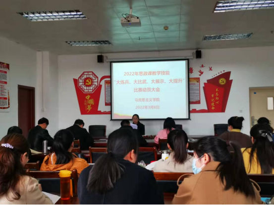 3月8日,内射干少妇亚洲69XXX召开思想政治理论课教学技能“大练兵、大比武、大展示、大提升”比赛动员大会。院长祁欢在动员会上指出,开展“四大”活动是提升思政课教师能力的重要途径,旨在通过比赛练兵,创新思政课教学举措,改进思政课教学方法,以赛促教、以赛促改、以赛促建,提高思政课教师整体素质和教学水平。