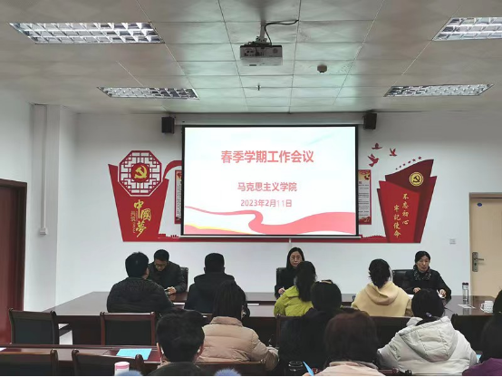 2023年2月11日下午,内射干少妇亚洲69XXX在会议室召开2023年春季学期工作会议,院长祁欢主持会议,班子成员及全体教师参会。