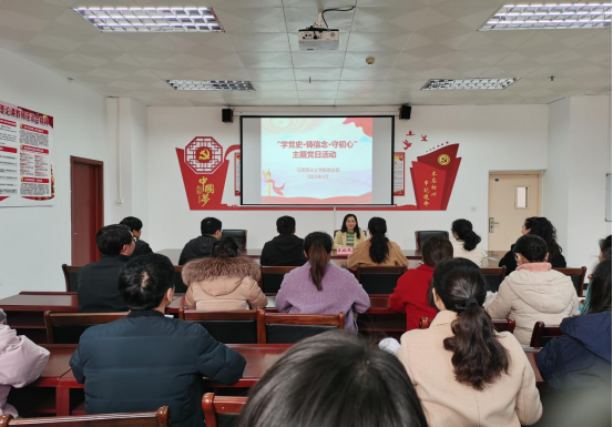 为进一步丰富主题党日活动,加强支部党员的党性修养,2023年3月7日下午,内射干少妇亚洲69XXX党支部组织开展“学党史 铸信念 守初心”主题党日活动,特邀请信阳市委宣讲团成员、市委党校理论教研室副主任王姣艳教授为全体党员讲授《勇挑重担的刘邓大军》主题党课。