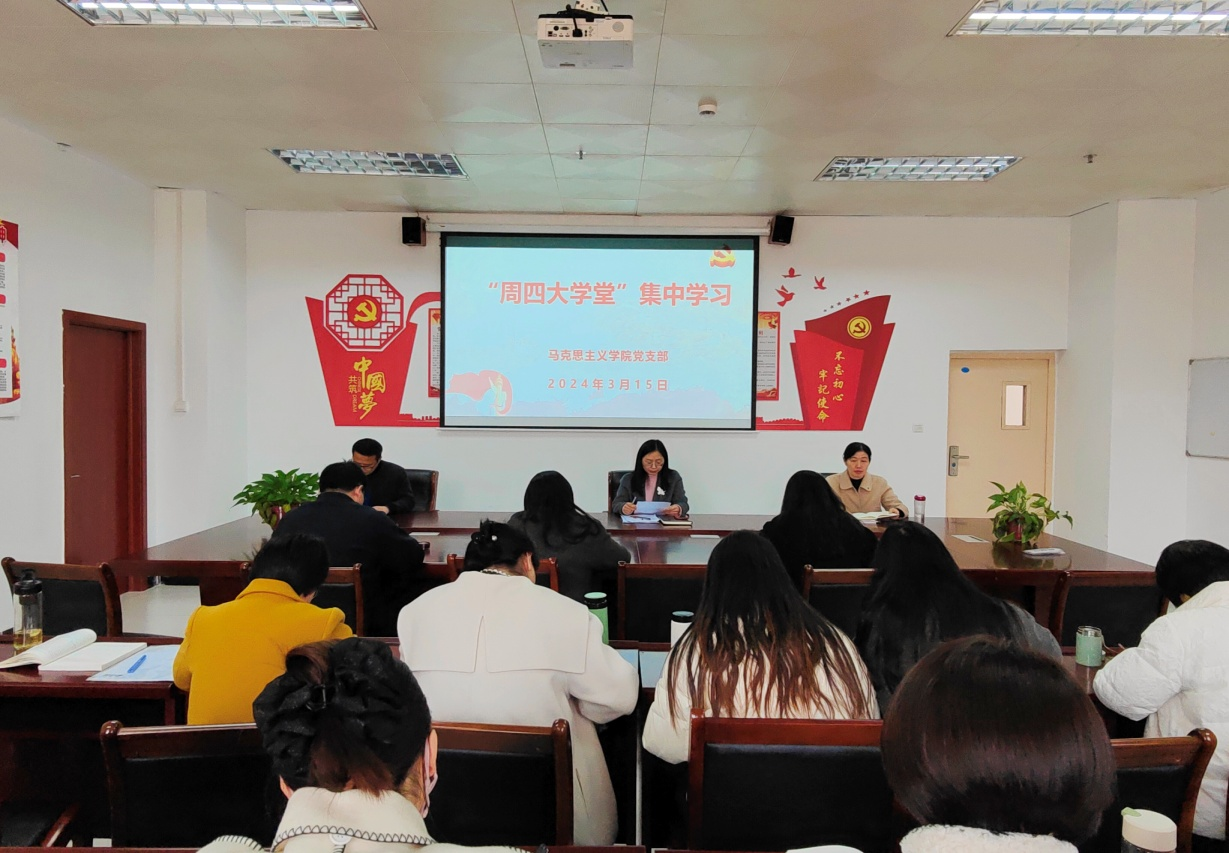 会后,党支部还开展了“周四大学堂”集中学习活动。本期“周四大学堂”以学习全国“两会”精神和新质生产力为主题,认真学习习近平在出席解放军和武警部队代表团全体会议时的讲话精神、习近平在看望参加政协会议的民革科技界环境资源界委员时的讲话精神、深刻认识和加快发展新质生产力(《求是》杂志评论员)和楼阳生署名文章《在发展新质生产力上争先出彩以创新之力跑出高质量发展加速度》。教师代表张艳、于林可围绕学习内容,结合工作实际交流了学习心得。(内容审核:郑玉秀 通讯员:曹涌)