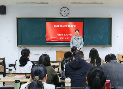 最后,郑玉秀对马院下一步师德师风建设工作提出三点要求:一是提高政治站位,筑牢思想根基:要求全体教师将师德修养作为终身课题,持续强化理论武装,做到真学、真懂、真信、真用;二是严守课堂纪律,规范职业行为:严格落实课堂教学管理责任,弘扬主旋律,传播正能量,决不给错误思想言论提供任何传播渠道;三是强化考核监督,建立长效机制:将师德表现作为教师职称评聘、评优奖励的第一标准,构建多方参与的师德监督体系。